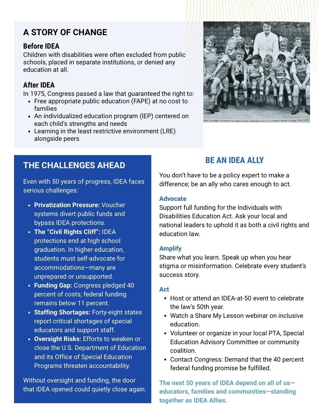 Explore the resources below to reflect on IDEA’s legacy, elevate educator voices, and continue the fight for equity and inclusion in every public school.