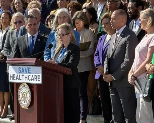 Catharyne Henderson, a nurse in surgical oncology from Ohio, went to Washington, D.C., in the early days of the government shutdown to speak out against the policies being pushed by Republicans in Congress and the White House that prioritize politics over protecting healthcare and keeping costs from rising.